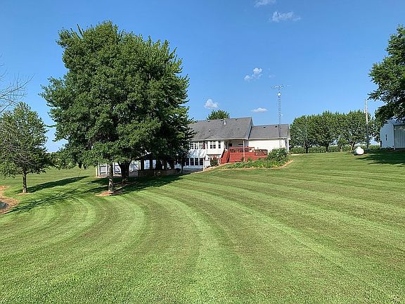 Beautiful 4,000 sq ft executive home sits on 6 acres with 2,000 sq ft out building. Front door opens to 14' vaulted ceiling, overlooking backyard view of lake and trees. Perfect for entertaining, main floor has Great Room, Dining Room, Family Room Breakfast Area and attached Covered Outdoor Living Area. An additional 3rd living room downstairs with wet bar and recreation area walks out to Pavilion, fire pit, and bar with built in grill. 3 bathrooms, 4/5 bedrooms with extra large closets