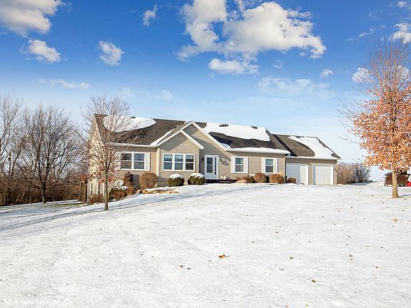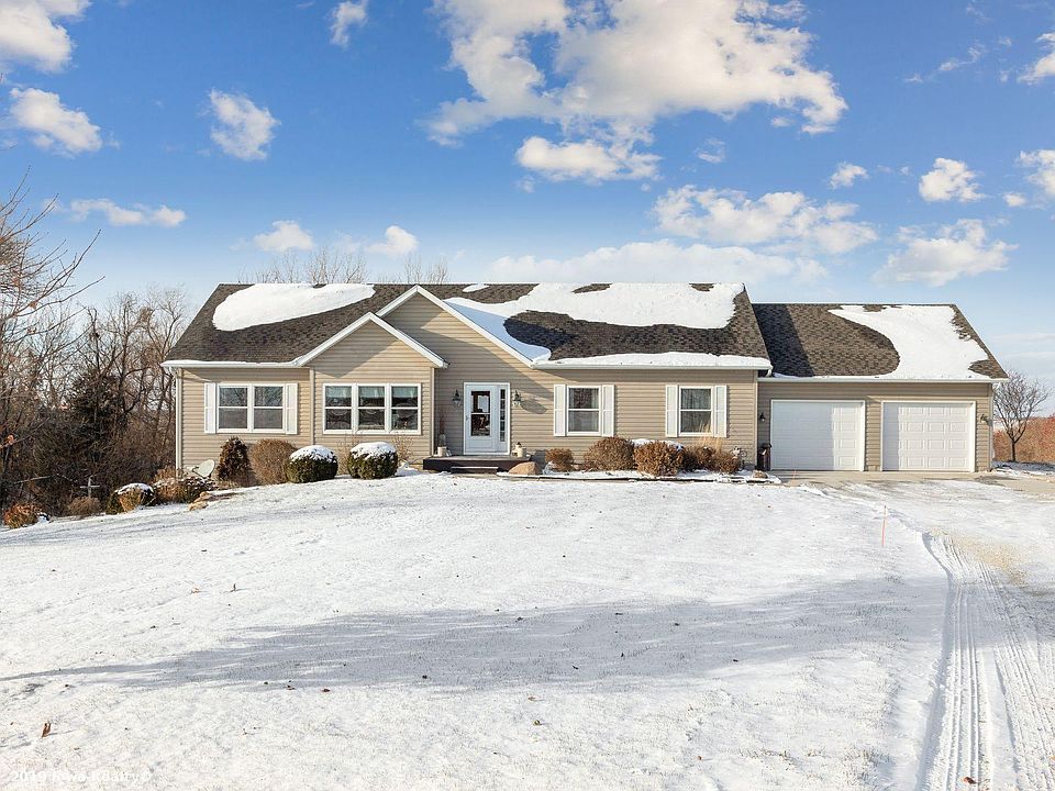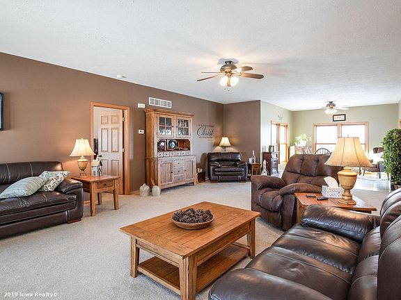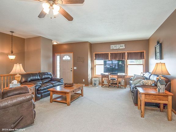 Wonderful acreage just west of Adel. Ranch home offering approximately 2800 sq ft of living space. Open floor plan with large living room, kitchen and sunroom area. Main floor contains three bedrooms and two baths along with a convenient first floor laundry. Lots of finish in the walkout lower level that includes a half bath (plumbed for a tub shower. Plenty of storage space and room to add a 4th bedroom if desired. You can see for miles from the large deck that overlooks the private backyard and pond.