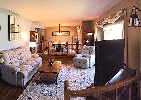 Beautiful ranch home offered by Owner. Phone or call (262-333-7204) . Buyers agents welcome! Features include Family room with Stone wall gas fireplace, built in cabinet/book shelf and wet bar. Sunk in Living Room. Formal Dining room with built in cabinet. Newly carpeted bedrooms. Basement rec room bar with wet bar. Three car insulated garage with epoxy coated floor, water spigot and central vac. hook up. Lovely, private backyard with large covered porch that leads out to paver stone patio with fire pit. Berm provides extra privacy. Kitchen features include quartz counter tops and stainless appliances 1856 Square feet on main level, 796 square feet finished in lower level. Priced below Zillow Zestimate!