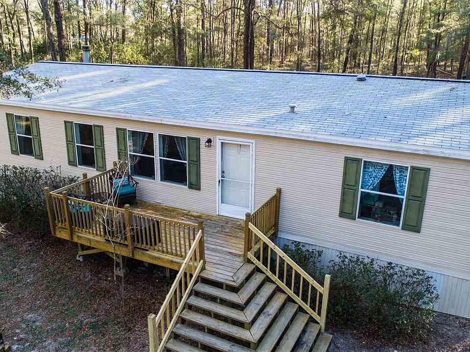 Welcome to your new home with 5 acres of peaceful serenity. Relax on your back porch with a cup of coffee while you watch the wildlife right in your back yard or curl up in front of the fireplace. This 3 bedroom 2 bath manufactured home has newer vinyl plank in all rooms except master bedroom and kitchen, NEW interior paint and a NEW roof; open living and dining area and a split floorplan. You will have plenty of space for you and your animals to roam. Property is eligible for FHA financing. Perfect investment property! Enjoy the enclosed air-conditioned workshop with ample space for all of your projects. Property is in an A rated school zone. Close to Beautiful High Springs and Alachua with interstate 75 only 5 miles away and Publix only 4.5 miles. You don't want to miss this peaceful property.