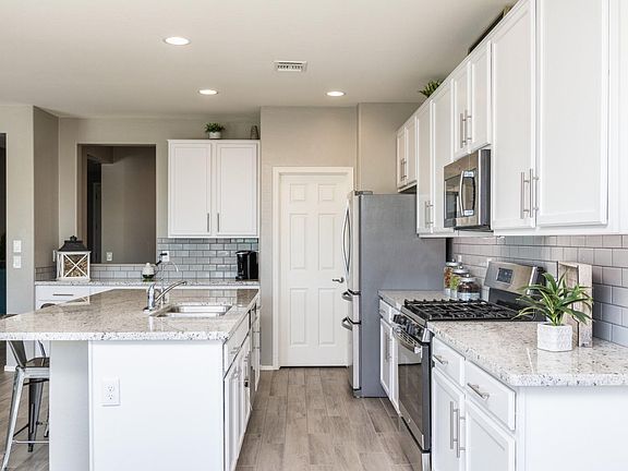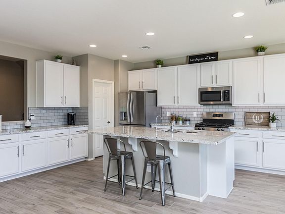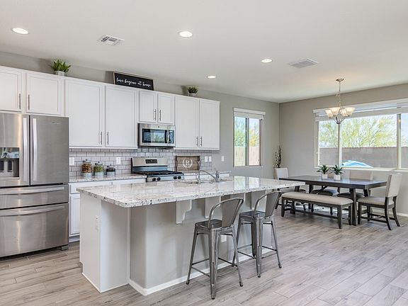 Well Sought after Verrado Community with A Rated Schools. This home was just completed the end of 2018 with beautiful Mountain Views. Neutral grey & white tones throughout with tiled ''wood'' plank flooring. 1 bedroom & full bath on 1st floor. 2nd floor laundry & a loft to extend living space. Beautiful white kitchen with large island & subway tile backsplash. Stainless steel appliances & large pantry. Master retreat w/private en suite with separate shower & soaker tub. Professionally landscaped backyard with turf and poured concrete. Extended covered patio with sliders off the dining room. 3 car garage/tandem garage. Community Pools, Fitness Center, Golf Courses,78+ parks, hiking, biking trails. The builder is not currently building anymore of this model floorplan or 5 bedroom home