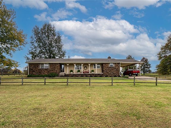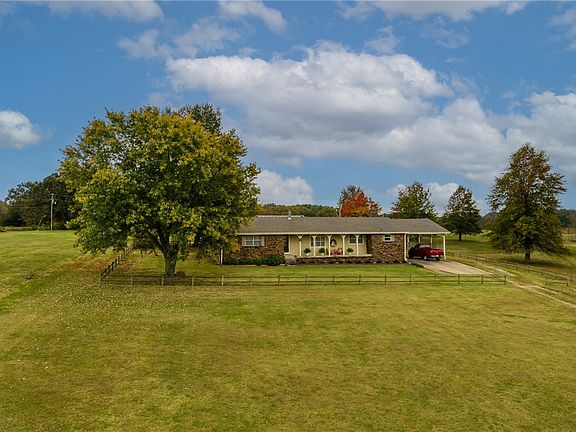 Enjoy beautiful views from covered front porch overlooking rolling pastures & spring fed ponds of this 72 acre farm! 3 ponds--2 spring fed & one in the back pasture that always holds water. 3 pastures fenced and cross fenced with 7 acres of woods/timber in back. A 4th pasture could be fenced off northwest of the house. Ranch style home has 3 bedrooms, 2 3/4 baths, 2 living areas--family room open to the kitchen plus formal dining area and sunken living room with wood stove! Remodeled custom designed kitchen and baths. Kitchen features lots of soft close cabinets & deep drawers for pans/casserole dishes, bar for eating in kitchen w/perfect area for trash can, & fabulous Kitchen Aid convectional oven/range. Primary bedroom en suite has double sinks, beautiful new vanity w/custom tile work. Hall bath has cool plumbing offering soaker tub w/sep, shower head & "telephone" faucet/sprayer head on tub--easy to bath & shampoo! Also listed as Farm listing ML 1259765