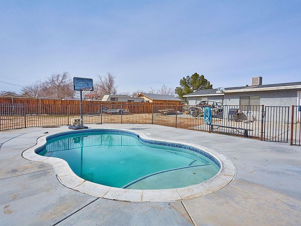 Welcome to YOUR NEW POOL HOME located in desirable Apple Valley! Situated on almost Half an Acre this single story home features 3 Bedrooms, Bonus Room with Wall Heater, 2 Bathrooms, Indoor Laundry, *1740 Sq. Ft , Enclosed Patio, Beautiful In Ground Pool, and RV access. Upon entering you are greeted by a HUGE Living Room open to the dining area. Spacious Dining Area and Living Room make a great space for entertaining family and friends! The Galley Kitchen is equipped with White Cabinets and White Appliances. The Bedrooms and Bathrooms are perfect size for family or guests! Step into the Backyard with Plenty of Room for your Toys and Concrete Slab perfect for BBQ's by the In Ground Pool! The In Ground Pool is conveniently gated off to keep your little ones safe! Be sure to put this one on the Must-See! View Today!