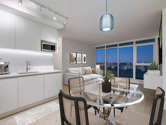Welcome to Lougheed Heights by Bosa, offering an opportunity to own an incredible home in Burquitlam's most desirable high rise. This immaculate 2-bed, 2-bath home boasts 1200 sqft of indoor & outdoor (combined) space w/ panoramic city, river, & mountain views from your large WRAP-AROUND BALCONY. Feat. include a gourmet kitchen w/beautiful cabinetry, a KitchenAid appliance package w/a gas cooktop, quartz countertops, separate bedrooms, wood flooring throughout, & much more. The location is phenomenal, just a short stroll to restaurants, shopping, & entertainment, close to SkyTrain to provide convenient & quick access to DT Vancouver and Coquitlam City Centre. W/more than 17,000 sqft of amenities, the building offers a resort-style experience feat 24-hr concierge service, an outdoor swimming pool w/a terrace & BBQ/dining area, a sauna, a fully equipped gym, a basketball court, a lounge, a guest suite & much more.1 pkg & 1 locker included. Pet & rental friendly. SHOWS LIKE BRAND NEW & READY TO MOVE-IN.