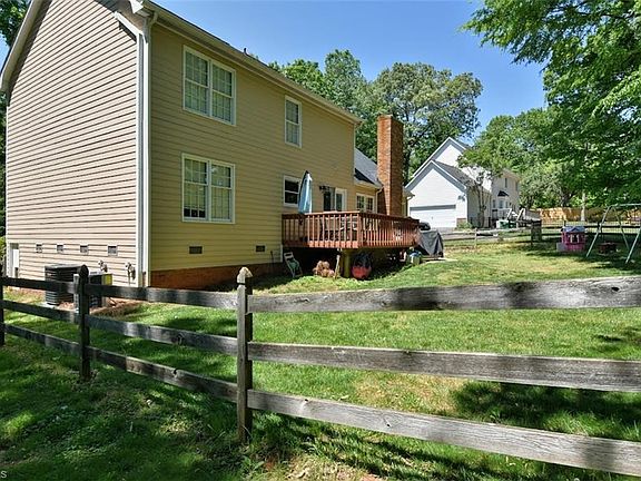 Family Neighborhood Park-like setting in Lewisville/Pfafftown! No HOA. Stately 2 story home with Very functional floorplan. Sunken den opens up to the eat in Kitchen. Huge amount of sq. footage. Upgraded kitchen w/ granite, tile, & ss appliances, cabinetry was upgraded. Den does have a gas log fireplace. But NOTE Gas Logs Currently not in use current family has not used gas logs not hooked up!!! Rear deck overlooks large partially wooded, fenced backyard. Master bath remodeled 2016. New roof 2018. New HVAC Downstairs 2019 and Upstairs 2022. Bonus room possible 4th BR. Crawl space has 6' ceiling & 15'x13' storage area. Excellent school district. Laundry sink has not been installed and will not stay.