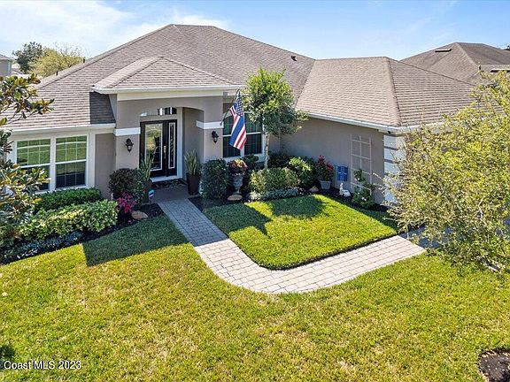 When you walk through the front door, you'll feel like you're in a custom built home. This 4 bedroom 3 full bath 2012 build has all the upgrades to satisfy the most discerning buyer. Newly installed PGT WindGuard Impact windows, a custom kitchen with white cabinets stretching to the 10' ceilings, quartz countertops, Miele appliances with the fridge and dishwasher having matching cabinet panels, Luxury Vinyl Flooring, Hunter Douglass Window Treatments, and Blink doorbell and security cameras are just a fraction of the upgrades you'll see at this home. The split bedroom plan has a wide open living space that opens to the covered patio with Belgaurd Pavers and direct lake frontage. The list goes on. This gated is in the heart of West Melbourne with close proximity to everything.