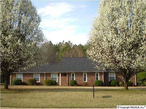 Comtemporary rancher with 4BDRM in Burningtree Estates that backs up to nothing but woods which adjoins the wildlife refuge. Huge Great Room w/vaulted ceiling, wood insert fireplace, open Dining area w/raised platform of hardwood flooring,freshly painted interior, new carpet, new roof, updated kitchen appliances, new vinyl windows, vinyl exterior trim, privacy wood fence and outside storage bldg. Burningtree Country Club area and minutes away from HWY 65,perfect for Huntsville/Madison commuters.