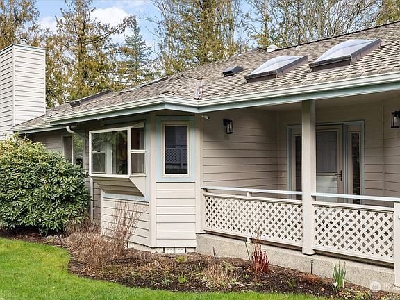 Welcome to Creekside Village! This charming one-level home nestled in a quiet cul-de-sac. 3 bedrooms, 2 baths home is light & bright. Vaulted ceiling, skylights, lots of windows bring plenty of light into this thoughtful floor plan including a cozy gas fireplace.The heart of the home, the kitchen, is a chef's delight with updated stainless steel appliances, a charming plant window, and a convenient eating bar. Meal prep becomes a joy in this well-appointed space. Outdoor living on expansive deck overlooking wooded area, enjoy evening BBQs. Community gated boat/RV storage for minimal fee. Say goodbye to tedious maintenance tasks with HOA fees covering building insurance, exterior maintenance (including pest treatment), and yard care.