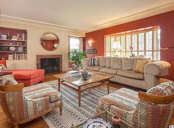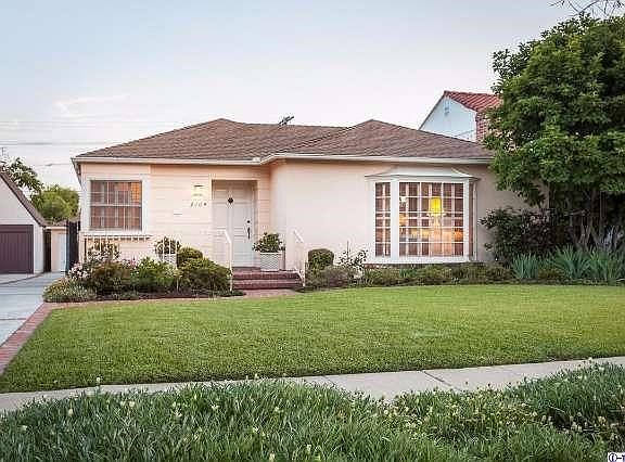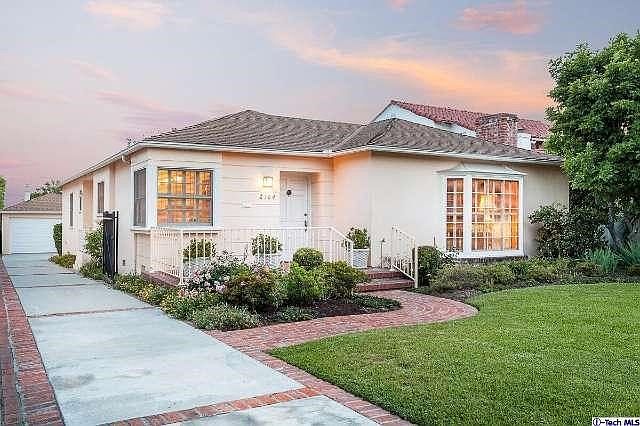 This single story 1937 traditional has been lovingly maintained over the years and shows like a dream. The current owner has been lived at the property for nearly 40 years and has clearly taken pride in this jewel box of a home. Upon entering, the living room looks out of a bay window to the northern mountains. The fireplace features a simple brick surround and original 30's wood paneling with built in bookshelves and cabinets with deco pulls. A wide doorway leads from the living room into a dining room with wainscoting and french doors which open out to a pretty patio space. The kitchen is original but classic and benefits from a great layout with an eat-in area surrounded by windows and built in cabinetry. The hallway leads to three bedrooms, one currently used as a study plus two bathrooms which feature period tile, fixtures and art deco design elements. The large backyard is flat and grassy and lushly landscaped. This is one of those special homes that rarely become available.