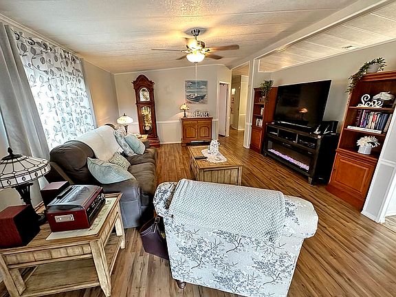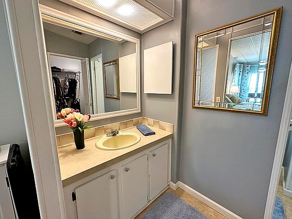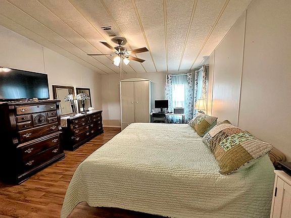 This beautiful 2 bedroom, 2 bath home is located across the street from the clubhouse. It includes a new roof, windows, flooring and inside laundry. The galley kitchen features a breakfast area and the dining room has a built-in hutch. The spacious living room leads out to the front screen porch and guest bedroom has a built-in hutch as well. The primary bedroom is nice and large and has a fabulous bath and closet. The professional landscaping is impressive as well. Call today to see this home!