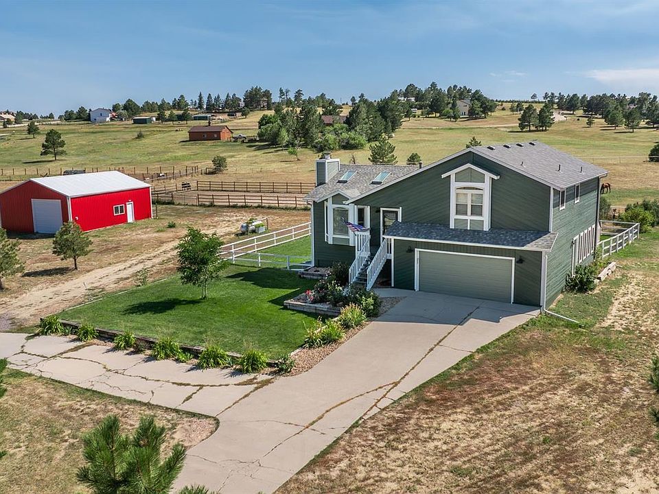 This beautifully remodeled acreage property represents the perfect combination of modern design, thoughtful craftsmanship, and the timeless charm of country living. From the moment you arrive, it is clear that every detail both inside and out has been carefully considered. The home has been reimagined with an inviting open concept and stylish finishes, while the surrounding grounds offer the experience of acreage life with fenced pastures, a well-equipped barn, and thoughtfully planned outdoor areas. It is a place where modern comfort meets the serenity of wide-open land. Inside, the home a welcoming layout draws you to the heart of the living space. The kitchen features granite counters, stainless appliances, and a large center island that anchors the space. The kitchen flows into the dining and great room with a stylish dry bar. The primary suite is a private retreat, complete with a spacious sitting area, an en-suite bath, and a walk-in closet. Two additional bedrooms and a full bath complete the upper level. On the lower level is the newly remodeled family room. The fully finished basement features a large guest suite that includes its own oversized walk-in closet and private 3/4 bath, an additional office and dedicated laundry area. The acreage itself has been designed with both practicality and enjoyment in mind. The property is fully fenced, with a corral and pasture providing ample room for horses or livestock, while a dog run or chicken coop adds versatility. The barn and multiple lean-tos are equipped with both electrical and water, making them highly functional. The exterior of the home has been given the same thoughtful attention as the interior. Recent upgrades include a brand-new roof and gutters, new metal roof/siding on all outbuildings, and a newly built deck with updated railings.This rare offering provides the freedom of open land, the practicality of well-designed equestrian amenities, and the comfort of a beautifully modernized residence.