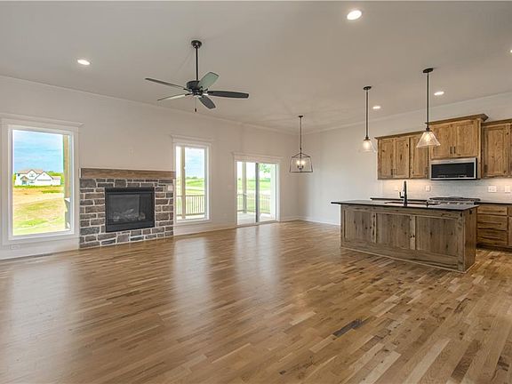 French country inspired exterior is beautiful! The covered entry and charming front door and windows are so inviting. Your family and guest(s) will want to linger in the dramatic open living/din/kitchen area with lots of natural daylight. Enjoy the rustic stone fireplace that can be enjoyed from kitchen and living area. Entertain guests and prepare meals with ease in the kitchen with large island, lots custom cabinetry, beautiful textured granite counter tops and a large walk in pantry. Delight in the custom-built bench and cabinets that greet coats and backpacks as you enter from the 3 car garage. The spacious primary suite with vaulted ceiling is tucked away creating privacy from the rest of the house with a wonderful tiled bathroom with a double vanity. Laundry room is on the main level and conveniently located creating ease to this daily chore. Bring your outdoor living ideas and create peaceful enjoyment on the large covered deck or the covered patio below that has privacy from a natural berm. Set up your workshop in the walk out basement that has double door access making get your tools, toys and hobby supplies in and out easily. Located in a quiet area on a cul-de-sac and is conveniently close to everything you need. Come envision your new beginning while it is still available.