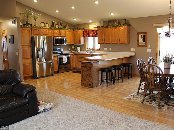 Stunning 4 bedroom, 2 bath home with gorgeous pond views! Home located on quiet, dead end street. This spacious home features open concept living/kitchen/dining room with SS appliances; large master bedroom with huge walk in closet; updated bathrooms; Sliding doors lead out to deck overlooking pond; Fenced in backyard; Large foyer with closet; LL features large family room with gas fireplace; Oversized heated 3- stall garage; A/C 18'; Roof 16'; Extremely well kept home that is move in ready!