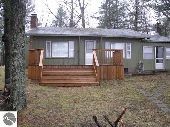 Excellent weekend getaway! Well maintained knotty pine walls & ceilings throughout with newer carpet in living room, newer tile flooring in kitchen & sunroom and hardwood floors in bedrooms. Warm up on a cool spring morning with the fireplace in the living room or free standing wood stove in the sunroom. It has 60' of frontage at the mouth of a canal entrance to Round Lake. Enjoy the view from the deck at the water. Has one car garage for more storage.