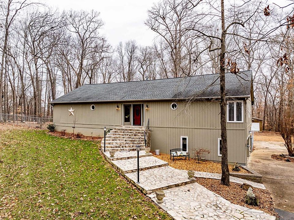 Large and spacious home tucked away on 4.6 acres right in town and surrounded by trees and privacy. The grand stone entrance welcomes you to this 4 bed 3 bath home with sprawling back porch that runs the length of the house and a generous main suite with large stone fireplace to tuck yourself away in your own oasis. Come see the rest of the charming details of this property by calling to schedule your appointment today.