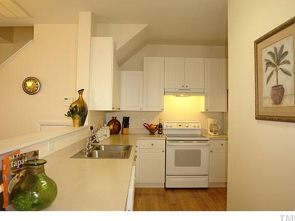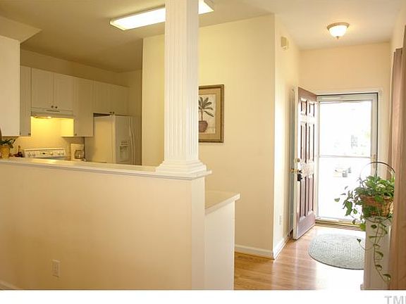 Absolutely Pristine 2BR End Unit in popular golf community! Modern hardwood style flooring, fresh neutral paint, 9' smooth ceilings! Open Kitchen with generous counters/cabs, smooth cktop & micro overlooks Dining & Living Rm w/gas log fireplace. Vaulted Master Suite w/double sinks & WIC. Relax on patio. Great n'hood...walking trails, pool, tennis, fitness, and of course, golf!
