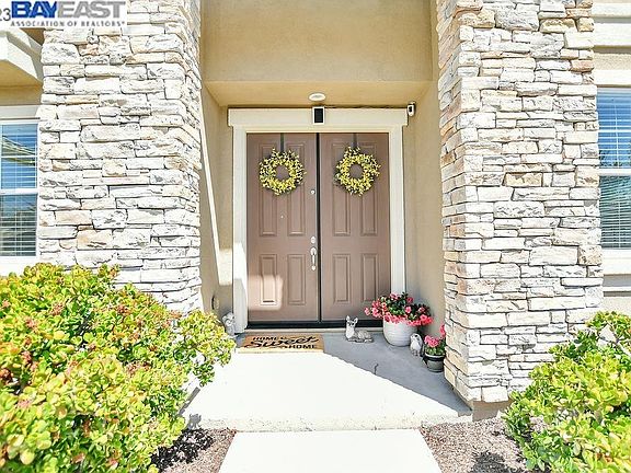 Absolutely Stunning Lexington Park Home. Situated on a cul-de-sac, this beauty has 5 bedrooms, 4 bathrooms, A very Large Private Suite on the first floor perfect for an in-laws quarters with a full bath & walk in closet and opens directly to the backyard it's an entertainer's dream from the front to the backyard that is situated on 12,572 sq ft lot. As you enter the home you are greeted by the formal living room & separate formal dinning room. The kitchen has SS appliances, R/O system, pantry and a granite island with cabinets galore. The bonus room upstairs is a great place for a family TV room or large office. The primary suite has coffered ceilings and large bathroom with a walk-in closet. Flooring boasts French-pattern Travertine, Camuru/Brazilian Chestnut hardwood, and 18-inch tiles. Custom window covering and ceiling fans in each room. Oversized shed is wired. Backyard features beautiful stamped concrete, new covered Pergola, mature fruit trees, rose bushes, and raised planters complete with drip system. Finished garage has ample storage space. The driveway parks 3+ cars, and the side yard has possible RV parking. Energy and water efficient features throughout. 4 minutes to freeway and 10 minutes to to Bart. This home has it all!