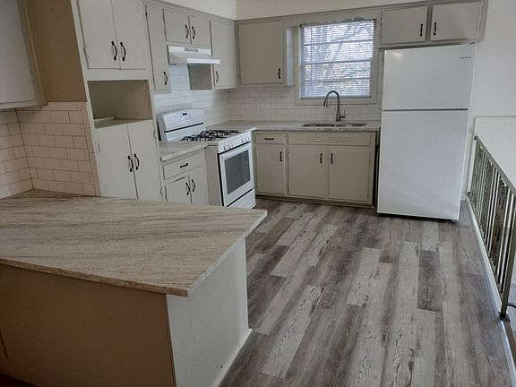 Move-in ready, beautifully renovated brick home is single story with 3 bedrooms and 2 full baths. Clean and well kept, this home has new granite countertops in the spacious kitchen, new subway tiled backsplash, open plan dining room leading through to the kitchen, and overlooking the spacious light-filled separate breakfast room. New luxury vinyl plank floors in the kitchen, breakfast room, and laundry room. The huge laundry has convenient shelving and opens to the privacy-fenced carport. Enormous living room is 18 1/2 ft by 14 1/2 ft and opens to the separate dining room. New refrigerator and new gas stove complete the comfortable kitchen. The bathrooms have ceramic tile throughout including the large standup shower in the master bathroom ensuite. Desirable large corner lot has fenced back yard and patio for children and pets. Double wide drive gate gives easy access to the spacious rear yard. The roof is very new and the exterior paint is in great condition. Lots of room for family!