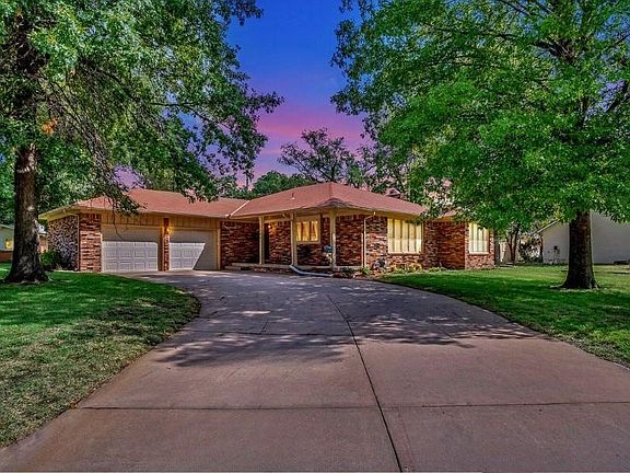 Very well-maintained, one owner home in the desired neighborhood of North Indian Hills/ Scenic Heights near the Arkansas river. All brick ranch with two car garage, on a corner lot with sprinkler system and irrigation well. Nice, covered patio. The interior has open spacious rooms. When entering you are welcomed by the brick gas insert fireplace highlighted with two floor to ceiling windows. A very nice kitchen with so much counterspace. A wall oven and cooktop stove allow for even more storage. There is a built-in desk area or coffee bar, a closet pantry, and all appliances included. The dining area allows for a nice breakfast nook or the ability to spread out for larger gatherings. A sunroom with glass French doors, adjacent to the kitchen, brings in wonderful natural light. Two large bedrooms on the main floor as well as two full baths. The main floor laundry off of the garage also includes washer and dryer. The basement is fully finished with an open staircase from the living room and a secondary stairway from the sunroom. You will find a very large rec room and another room with a closet. Equity building potential here with a possible added egress and plenty of unfinished space to add another bathroom. The location is fantastic, just off of W 21st with easy and quick access to HWY 235, Sedgwick County Park and Zoo, and many dining and shopping locations!