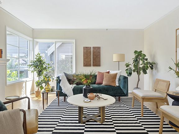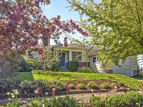 Meticulously maintained Woodlawn ranchalow shines with the spirit of historic preservation. This unspoiled beauty has many restored original features. Set up from the street, in a lush landscape, featuring plantings from Cistus nursery. Bright kitchen has new flooring and dishwasher. Formal dining has pretty views of trees. Living room with fireplace + hardwoods throughout. Fresh finishes in the tastefully renovated bathroom. Corner windows with horizontal mullions. All original windows have been painstakingly stripped and painted, re-glazed, and re-strung. Primary bedroom has an updated sliding glass door leading to the large covered patio and private, sunny backyard. Vinyl siding has been removed and the original wood siding restored and painted. Restored chimney, new fence gate with keypad lock, new exterior side and garage entrance doors. Newer electrical panel and pex plumbing. High efficiency gas furnace + decommissioned oil tank. High ceiling basement with exterior entrance. Detached garage with opener. Near Alberta, Woodlawn and Fernhill parks. Easy jaunt to grab food and drinks at Tamale Boy, P's & Q's, Woodlawn Coffee and Pastry, Breakside Brewery. Nestled at the intersection of the Vernon, Woodlawn and Concordia neighborhoods. [Home Energy Score = 3. HES Report at https://rpt.greenbuildingregistry.com/hes/OR10237592]