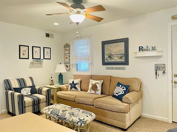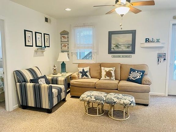 Wondering when to invest in yourself? Well, the time is here! This meticulously maintained fully furnished 1st floor 2-bedroom 1 bath condominium is waiting for it ‘s new owner. You will be greeted with a cheery and welcoming feeling as soon as you enter. You will not be disappointed in the living space. It has a living room, dining area and a full kitchen with a breakfast bar. The tile floored kitchen has an abundance of cabinets and counter space along with a built-in microwave. It has a full-size washer and dryer in the unit, which is a huge perk. The bathroom has tile floors and a bathtub. Relish in the morning sun while on your porch swing and take pleasure in those evenings of relaxation and conversation. The only thing you need to do is unpack your bags and create some shore memories that will last a lifetime! This unit can be used for your personal year-round enjoyment or utilize it for rental income. YES, it can be rented. There are 3 units within the association and the best part is there is NO HOA fees or capital contribution. This home has been nonsmoking, and no pets. However, pets are allowed within this association. You don’t want to miss this opportunity. Call me today for all the details or a private showing before it is gone!