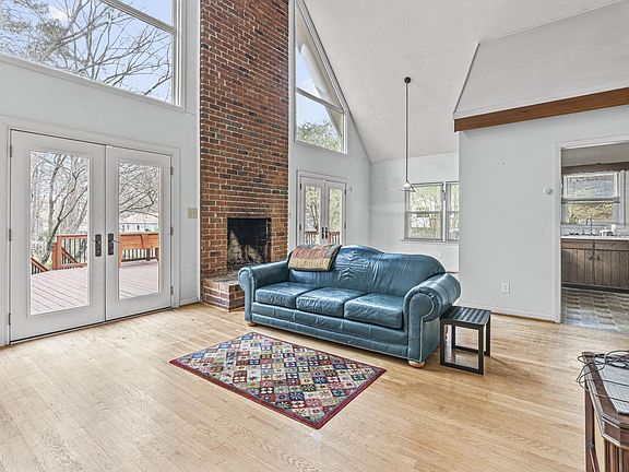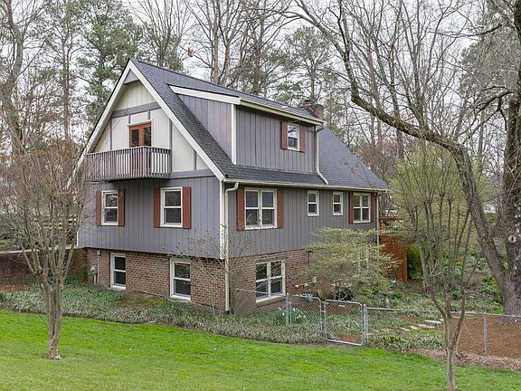 Truly unique A-frame inspired home in desirable Midtown location. Home has been loved and cared for by the owners since 1984. High ceilings and expansive windows welcome you upon entry. Floor to ceiling brick fireplace plus a secondary fireplace in the fully finished basement! Two bedrooms on the first level including a full bath with dual vanity. Walk out onto your expansive deck with distinctive pergola overlooking the well-tended to and abundant garden (more info attached!); this is the ultimate space for an outdoor gathering or to grill out with friends and family! Upstairs includes the primary bedroom with walk-in closet and balcony access! Additional bedroom upstairs that would be a perfect office space. Basement includes a secondary living area plus a space that would be perfect for crafts, office, or play. Additional bedroom and full bath down! This is the perfect house to make your own. Convenient to Downtown Raleigh, North Hills, 440 and 540.