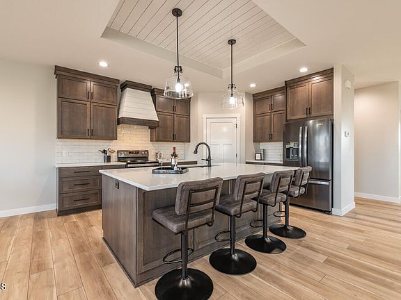 Experience luxury living redefined in this breathtaking new construction twinhome, beautifully designed for comfort, functionality, and exceptional style. Built to impress in 2024, this property boasts an array of high-end finishes and thoughtful details. Move right in with no hassle: new yard with sod, landscaping, & concrete edging. From the moment you enter you will enjoy spacious open-concept living area where natural light streams through the Anderson windows, creating an inviting atmosphere perfect for entertaining and relaxation. The heart of the home features a sleek kitchen with hickory cabinets, equipped with Whirlpool appliances, a large center island, and quartz countertops. An electric range, with the option to convert to gas, compliments the stunning hood vent above, making this kitchen a chef's dream. The adjoining dining area seamlessly connects with the living space, where a cozy gas fireplace serves as the focal point for gathering.