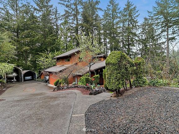 First time on market, unique and compelling custom NW Contemporary home sits perched on a half acre lot with territorial view. Designer touches and light filled spaces embrace you in this timeless oasis. Property invites you to enjoy a life that flows seamlessly from the main living out to sprawling decks and landscaped yard below. High vaulted ceilings and wall of windows give the Living Room a luxurious feeling. Lower Level has Owner's Suite with plenty of storage, w d and 2nd Bed. Upper level bonus den bed has a half bath and its own balcony. Partially covered deck with natural gas hookup for BBQing and entertaining. Hobby workshop wired for 220v. Easy commuter home with direct access to HWY 101, medical, shopping and amenities.