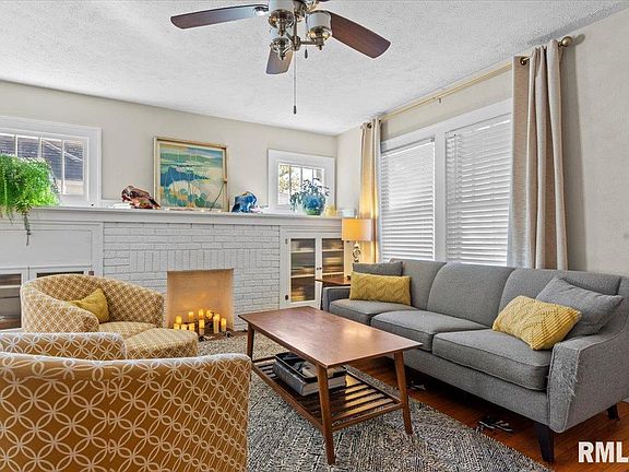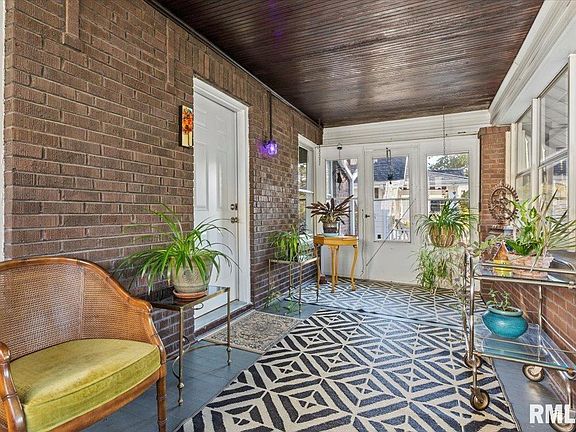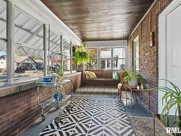 Solid, clean and updated 4BD 1.5BA brick bungalow with large 2.5 car garage. Awesome enclosed front porch. HW floors and tile throughout, Quartz counters and cherry cabinets in the kitchen. Pretty brick FP focal feature (not operable) with bookcases in the LR. Updated bath with large deep tub. New roof on house and garage, 6" gutters, and gutter guards (2021), new furnace (2021), new SS fridge and dishwasher (2021), new plumbing and new electrical (2021). Wood look blinds throughout main floor will stay. Closets are big and all have updated hanging systems. Finished basement has 4th BD with egress, large rec room, wet bar, storage room, half bath, and laundry. Laundry room plumbed for a sink. All windows open and all have storms and screens, including the porch. Partially fenced yard. Great neighborhood! Agent Owned.