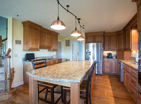 Stunning cape cod with possibility of 6 BR & 4 BA on nearly 5 acres with astonishing views! Large, open living room w/ fireplace and a balcony overlooking! Unbelievable kitchen with stainless steel appliances, granite counters, island, eat-in area, breakfast area and access to an additional breakfast area on screened porch & formal dining room! Main level master suite w/ tons of closet space & bath with soak tub and shower! BR used as home office on main level. 3 upper BR, full bath! Lower level family rm, exercise area, bonus rm & full bath! Double attached garage! Fantastic rear deck, play area, in-ground pool & pool house! Spacious detached shop garage with no shortage of storage area! Come see to experience!