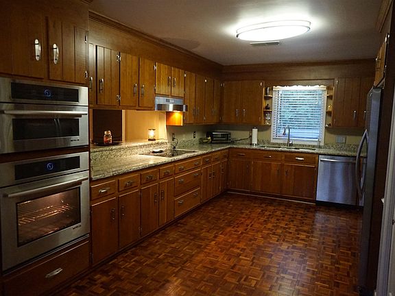 HUGE PRICE REDUCTION!! The perfect location and a rare find! All brick, single story, 4-bedroom home with 3.5 baths. Every room is unique and has beautiful character & class! Enter in through the castle doors and step inside to the foyer to see Solid wood parquet flooring, the Formal dinning and living room with brick fireplace perfect for entertaining. Custom eat in kitchen has Jenn-Air stove and microwave combination, smooth top Jenn-Air range and Jenn-Air dishwasher. Granite countertops, stainless steel hardware, pantry, triple bowl sink and easy open drawers. Mudroom has a full bath, plenty of room for folding, storage and wash sink. The family room is a beautiful piece of art with vaulted ceilings, brick fireplace and wooden beams that span above. The living room opens up to a peaceful sunroom with newly laid tile and vinyl windows. The owner suite has two walk-in-closets and an updated bathroom, shower and double sink vanity fit for a king and queen! Down the hall is an additional three bedrooms with one full bath and a half bath for guests. House has cat5 wiring in every room, ADT home security, nest thermostats & three attic access points. Huge back yard is fully fenced with 6 ft. privacy fence, storage building with lean to and storage area under the home. Leaf guard gutters, true two car garage, sprinkler system and beauty all around! Don't miss this work of art!