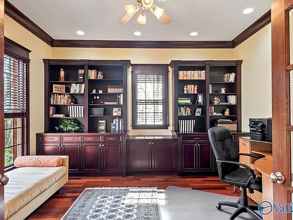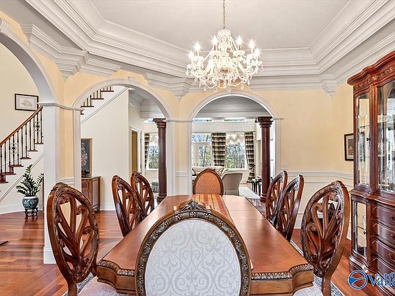 Wonderful one-owner brick home in Jones Valley. Grand 2-story foyer opens to 2-story formal living, dining room & study. Beautiful features throughout include Brazilian Cherry floors, unique salvaged wood columns, custom crown molding and special trim! Primary & Guest Suites on Main level. Zero-threshold entry from garage to home & guest suite. Upstairs has 2 Bedrooms with private or connecting baths & a MEDIA or 3rd bedroom. Finished basement includes a Rec & Exercise Room, 5th Bedroom, Storm Room, Great storage & direct access to rear yard. Front & Rear staircases from the main level to upstairs. New Trex Deck off Great Room. Custom built by Devier Custom Homes. Radon system 2023.