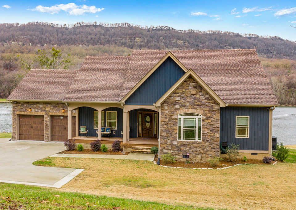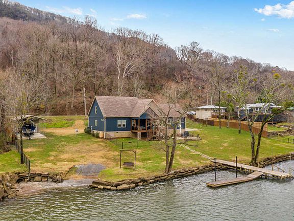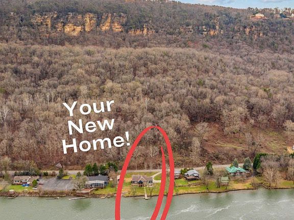 A place like no other!!! Dream home included, resting just above the mighty Tennessee River and at the base of the majestic mountains of the TN River Gorge. Like new, built in 2018, 1,600 sq ft all one level plus over 1,800 sq ft of unfinished expansion area upstairs, with electric rough in, blown insulation, and sub floor all in place. Mountain views from the front porch, and the most remarkable sunsets from patios, covered back porch, and dock, positioned on one of the best spots on the river to have panoramic mountain and water views up and down the river that's less than fifteen minutes into downtown. Three/two with gorgeous finishes and detail touches throughout, plus dock with two slips, extra 16 x 20 garage w/carport for water toy storage, and ramp directly below it to launch your boat from your back yard. Huge opportunity here, to own your dream home, a place like no other, see it today!!!