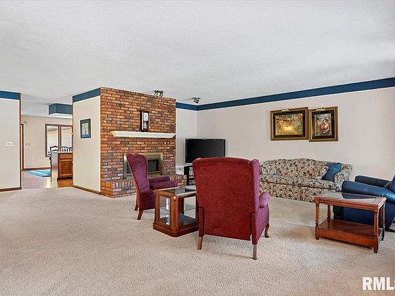 Brick fireplaceOffice spaceFamily roomSplit bedroom formatBreakfast bar