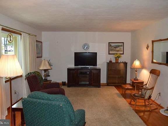 1814 sqft, 4 BR, 2.5 Bath rancher w/office (sep entrance), 4 (potentially 5) garage bays. Wood floors under carpet in BR's & DR. Granite counters. Owners suite w/full bath. Poss inlaw suite in mudroom, office, 1/2 bath area. Finished family room in basement w/gas insertFP. Gas FP in LR. 200 AMP elect, Heater 2003, Water Heater 2013, all windows replaced,heatpump heater. Extra laundry hookup in mudroom. Screen room. Elec dog fence. Near MD line.
