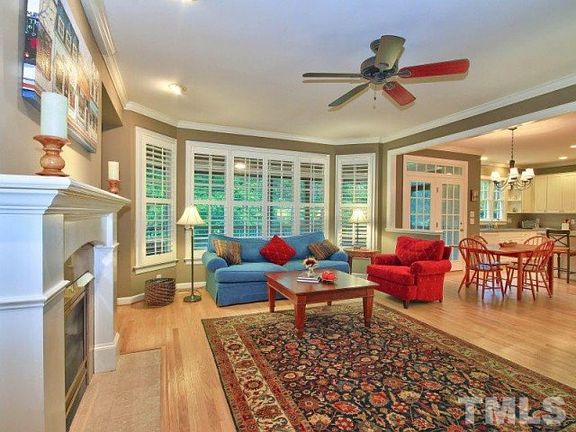 Enjoy peace and quiet in this tranquil private one acre setting in SW Raleigh! This stunning 3 bed/2.5 bath home is move in ready with gorgeous refinished hardwood floors, a spacious open floor plan, plantation shutters, beautiful trim work including built in shelving, crown molding, chair rails and an incredible custom screened porch overlooking lush landscaping and a serene backyard. Home includes an irrigation system, over-sized garage and NO HOA FEES or city taxes. Close to downtown Raleigh and Cary.