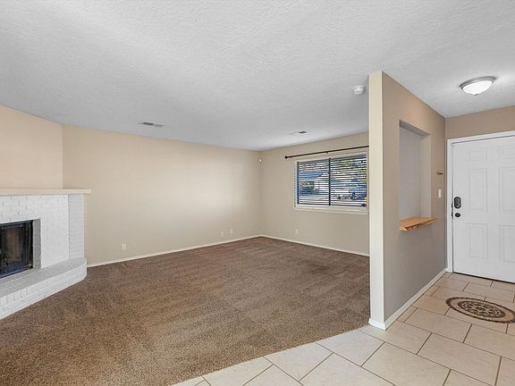 Beautiful brick fireplaceCozy kitchenSleek stainless steel appliancesSpacious backyardBeautiful tile flooringSoft carpet