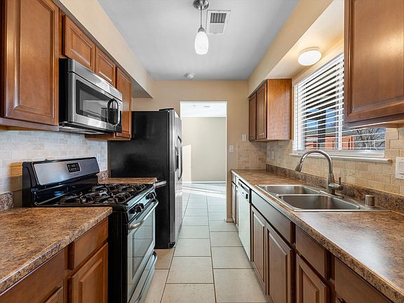 Welcome to this charming and inviting 3-bedroom, 2-bath home located off Southern and Unser. As you enter, you're greeted by beautiful tile flooring that flows seamlessly through the entryway, dining room, kitchen, and hallway, creating a warm and cohesive feel throughout. The cozy kitchen features sleek stainless steel appliances, while the living room offers a built-in bookcase, a beautiful brick fireplace, and soft carpet perfect for unwinding after a long day. French doors in the light-filled dining area open to a spacious backyard, providing the ideal setting for enjoying the relaxing New Mexico sunsets. All three bedrooms are generously sized with comfortable layouts and the two bathrooms include decorative mirrors and stylish details that add an extra touch of charm. Convenient washer and dryer connections make laundry days a breeze. Don't miss this wonderful opportunity. Schedule your showing today!