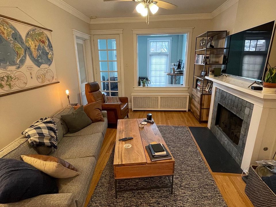 Fabulous 2 level, 2 bedroom, 2 bath apartment in the heart of Roscoe Village! Hardwood floors, free laundry in the basement. Beautiful landscaped backyard. Walk to EL. Tenant pays for gas and electric.