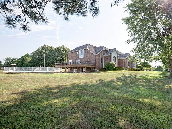 Soon to be empty nesters, MOTIVATED sellers say bring all offers!!! Rare opportunity to own 20 acres in such a great Nixa location!!! This custom brick home on 20 m/l fenced acres has everything a family could want. On the main floor you will find the master bedroom and bath as well as guest bedroom/bath and office. Upstairs is new carpet with 3 bedrooms, 2 baths, a giant playroom or bonus living room and finished storage/attic space. Head on down to the basement for the 3rd living room, rec space, wood burning fireplace, workout room, hot tub room, bedrooms 6 & 7 as well as 2 more bathrooms. Outside features attached and detached 4 car garages (total 8), new 1700 sq ft deck with gazebo which overlooks a gorgeous in-ground pool complete with diving board and slide. Riding arena, STOCKED POND, another gazebo, 40X60 metal barn (with new roof), stalls, tack room and half bath. Attached to barn is a HANDY MAN'S DREAM 25x60 WORKSHOP complete with heat/AC and concrete floors. West side of barn has attached 30X60 shop/storage/garage with heat and concrete floor perfect for storing a boat and or camper. Option for more land available. Be sure to check out VIDEO.