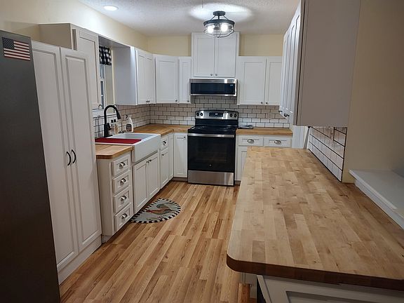 Ready to move in. Freshly painted interior, updated kitchen with new cabinets and butcher block countertops, new appliances, updated main bathroom with walk in shower, hardwood flooring, CH/A, spacious laundry room with sink and counter, thermopane windows, detached workshop, patio area just off the multi-purpose room, fenced backyard. Call Brenda @ 580.251.0278 for showing today.