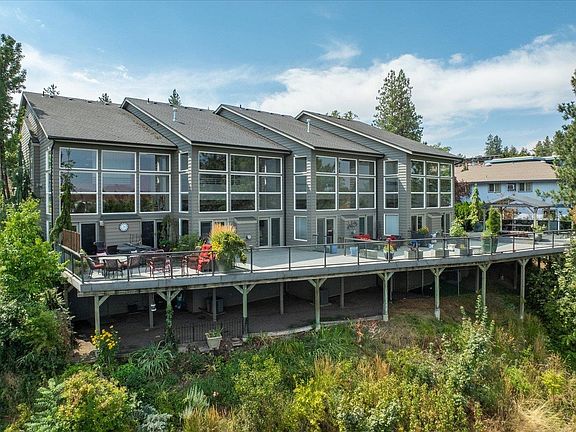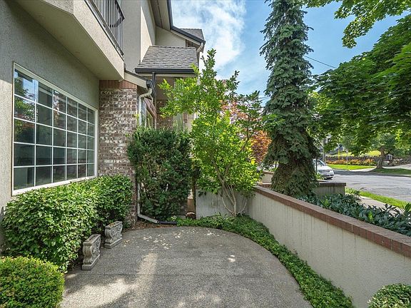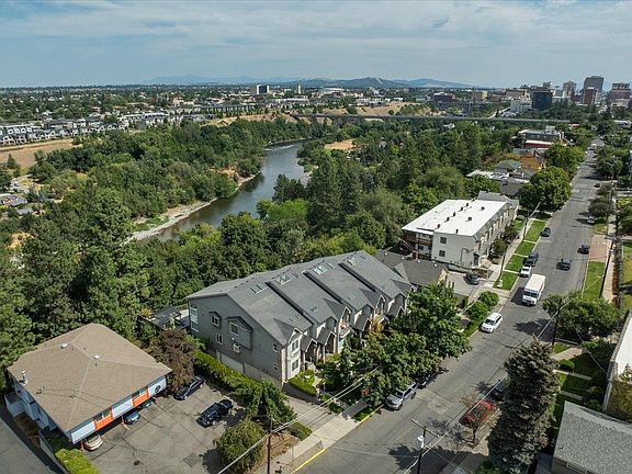 This luxurious 2 bed 1 and a half bath condo overlooks the Spokane River, Downtown skycape, Kendall yards, and the Spokane Arena. Enjoy the luxurious finishes with marble and hardwood flooring, vaulted ceilings, modern kitchen with pantry, office with beautiful wood built ins and wet bar and 3 garage spaces in the private parking garage underneath the building. This unit also has a private entry courtyard and back patio with stellar views. The modern kitchen with high end appliances overlooks the dining room and living room which has floor to ceiling windows. The master bedroom upstairs also has views out the windows to the River and Spokane viewscape! There is a guest bedroom upstairs with its own balcony. This condo is in the perfect location for walkability to downtown, Browns Addition, the MAC and the surrounding coffee shops and restaurants.