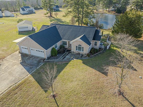 A four sided brick ranch on almost two acres, that backs up to pond with 5 garage spaces in Wake County?!? Yes! This beautiful move in ready home has so much to offer and plenty of space to do anything you can imagine. The large kitchen opens up to a breakfast space and a huge family room. There is also an ample sized dining room and front room perfect for entertaining, homeschooling or even a space for family games. Three bedrooms+office+craft room and large utility mud room. The house has an oversized 3 car garage attached, a two car detached with workshop space AND a parking pad for an RV! Ceilings recently scraped, all walls painted and freshly painted kitchen cabinets mean all that is left is for you to move in and put your special touch on it!