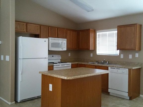 Located in the Homestead North community in Maricopa, this 3 bedroom, 2 bath home has all the space you need at 1454 sq ft and is move-in ready. All appliances are included along with a washer and dryer. A 2 car garage keeps your vehicles clean and cooler and your back yard has both covered and extended patios and is fenced for maximum privacy. The lease is a one year minimum and this is a no pet home.