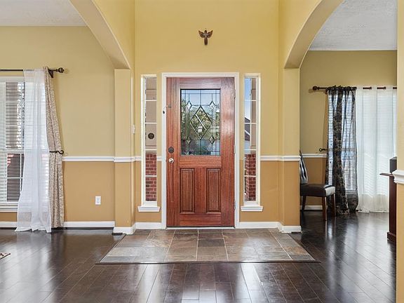 Whether its a morning cup of joe on the covered front porch, dinner on the back patio, or watching the sunset from the covered front balcony, you are going to LOVE the homes many outdoor living spaces. This 5 bedroom home has spacious bedrooms & open areas for the whole family to enjoy. No carpet - wood flooring in main rooms & all bedrms. 2 story den. Gas fireplace. Wrought iron balusters. Lots of natural light. Silestone counters, glass mosaic tile back splash, & slate flooring combine with a gas cook top, large pantry, & undercabinet lighting for a beautiful & functional kitchen. Luxurious king size primary bedrm has ensuite bathrm with garden tub, his & her vanities, & shower with a seat. Walk-in closets. Multi function game rm has speakers, projector & screen. Double door entry into media rm. Downstairs A/C-2017. (2) Water heaters-2020. Tech shield. Short walk to Klein schools. Community swimming pool, playground, & clubhouse. Quick access to I45, Grand Parkwy, shopping & dining
