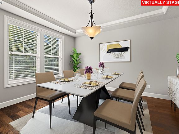 Welcome to this stunning Sherwood home built by Renaissance Homes, known for their quality and high Energy Star standards. A great room concept floorplan featuring engineered hickory hardwood throughout much of the main level, with new carpet and pad throughout the rest of the home. Like new! The great room also includes a gas fireplace and built-in shelving. Lots of natural light! The chef's kitchen boasts two-toned cabinets, granite countertops, an island, and a pantry. Stainless steel appliances include a gas range, built-in oven, new dishwasher, microwave, and refrigerator. The main level also offers a formal dining space and a spacious nook. Upstairs, retreat to the primary suite, featuring a soaking tub, walk-in fully tiled shower, and a spacious walk-in closet. There are three additional bedrooms, one with a walk-in closet, and a guest bathroom with a shower-tub combination and double sinks. A bonus room provides the option for a fifth bedroom, office area, or additional living area. The upstairs utility room comes with a washer and dryer, storage, and a utility sink. An oversized two-car garage with shelving provides ample storage space. The low-maintenance yard features a covered back porch, perfect for intimate gatherings. This home is located in a quiet cul-de-sac neighborhood and backs up to Ridges Elementary School. A wonderful location close to shopping, restaurants, wineries, and Sherwood's highly rated schools.