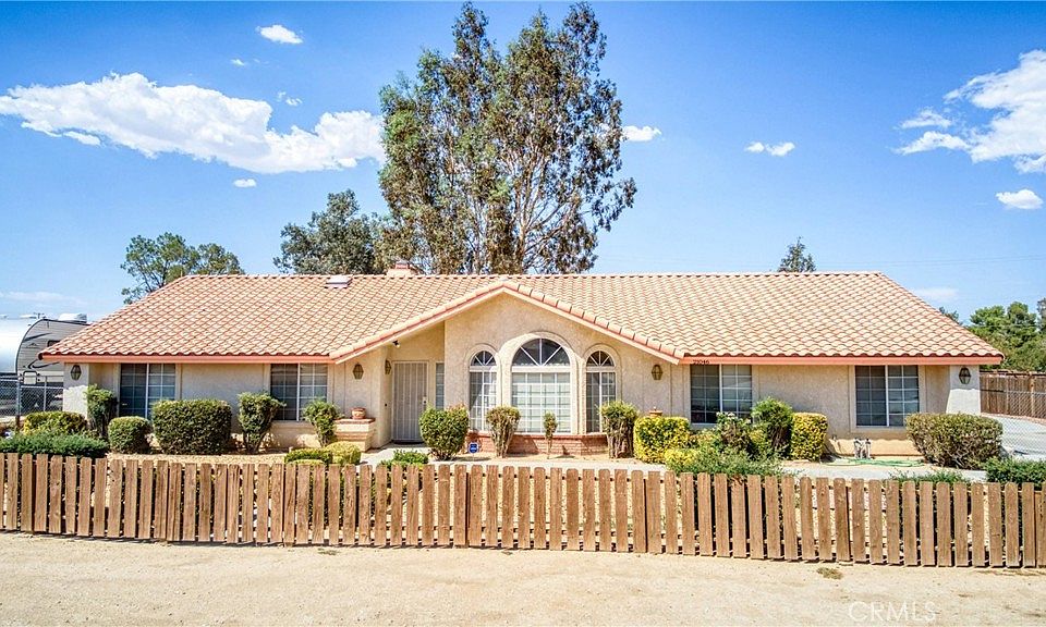 Motivated Seller! Single Story Apple Valley Home Located on a Flat Rectangular Lot. A Fenced Front Yard with Landscaping Leads you to a Tile Entrance with a Formal Sunken Living Room with Plenty of Natural Light. Adjacent to Living Room is a Dining Room with Chandelier. An Arched Entryway Leads you into the Large Family Room with Vaulted Ceilings, a Ceiling Fan, Large Windows Providing lots of Natural Light, and a Fireplace. Kitchen with Bar Seating, Tile Counters, Tile Floors, Refrigerator, Range, Ceiling Fan, and Recess Lighting. Eating Area off Kitchen with Windows Overlooking Backyard. Primary Suite Offers Ceiling Fan and Large Walk-in Closet. Primary Bathroom has Plenty of Vanity Space with Two Sinks, and a Tub/Shower. The Two Additional Bedrooms both have Ceiling Fans and Mirrored Closet Doors. Guest Bathroom has Tile Counters and a Tub/Shower. Large Laundry Room with Sink, Includes Washer and Dryer, and Additional Toilet. The Backyard has a Covered Patio and a Large Cemented Area with Plenty of Potential, and RV Access.