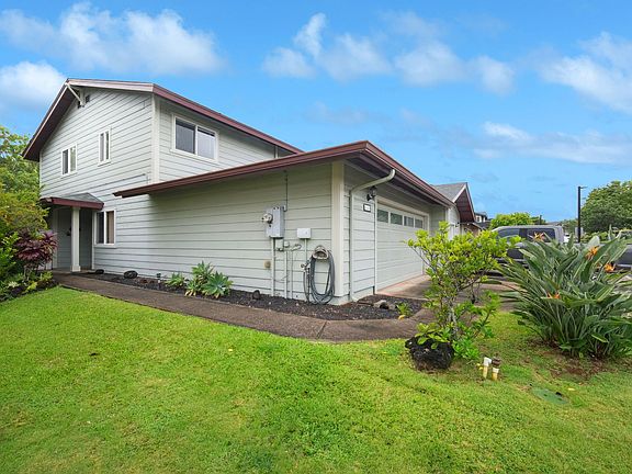 This offering is a 4 bedroom 2.75 bath townhome with a yard. What makes this HaleMalu at Puhi offering unique is the size of the yard. The back yard borders Grove Farm property. There is a ditch/stream which makes some of the property unusable from the Grove Farm side. The current owners have been able to landscape and enjoy it. You rarely see a condo that has so much accessible land next to it. This is a two story unit. Downstairs has the kitchen, main living area as well as a small bedroom and half bath. The hallway leads to the 2 car garage. Upstairs has 3 bedrooms and 2 baths. The interior of the home has had some improvements, such as newer flooring downstairs. This unit has a newer roof replaced in 2024. The HOA keeps the front landscaping fresh and does a quarterly pest control. The Sellers will consider leaving their furniture for the new buyer. Sellers need to reside in unit until 10/31/2024.