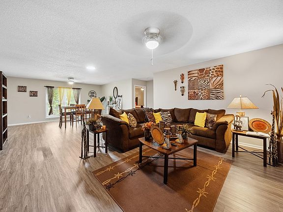 Charming renovated home! This updated 3-bedroom, 2-bath home features a huge open floor plan with a split-bedroom layout, fresh paint, and updated flooring throughout. The kitchen offers beautiful granite countertops, perfect for cooking and entertaining. Enjoy the large front porch, a fenced backyard, a storage shed, and a single-car garage—everything you need for comfortable, easy living. Roof, HVAC, hot water heater and ceiling fans in all bedrooms less than 4 years old!