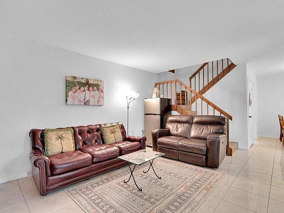 Ideal location across from the tennis, basketball and pickleball courts. The downstairs den has been converted to a bedroom with a closet. New smooth ceilings, upstairs bath rooms, washer/ gas dryer, gas water heater, ref. and dishwasher. Complete accordian shutters and new front door. Tile floors downstairs and laminate on the stairs and upstairs.
